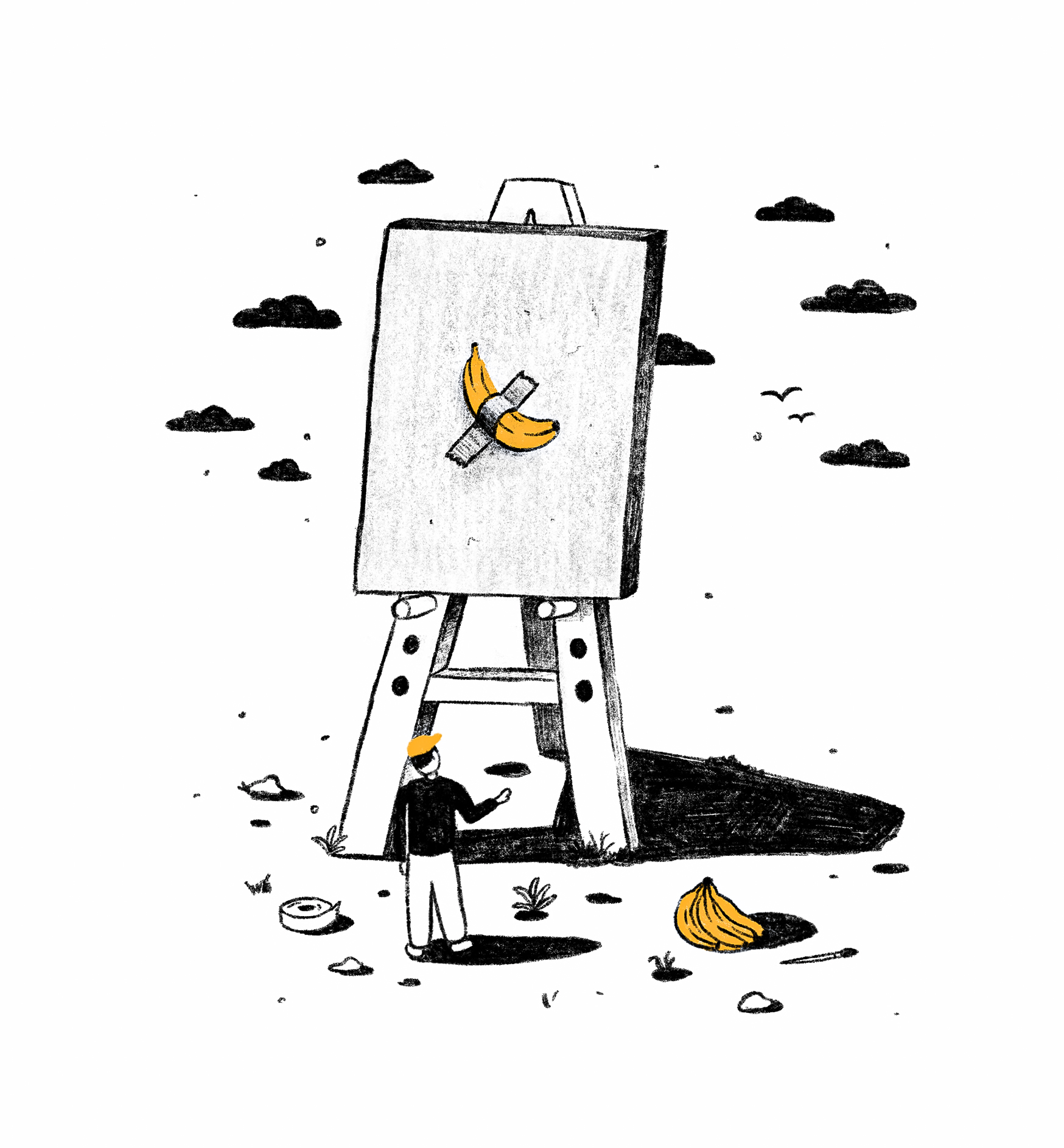 – käsitsi joonistatud, kergelt tekstuurne joongraafika;